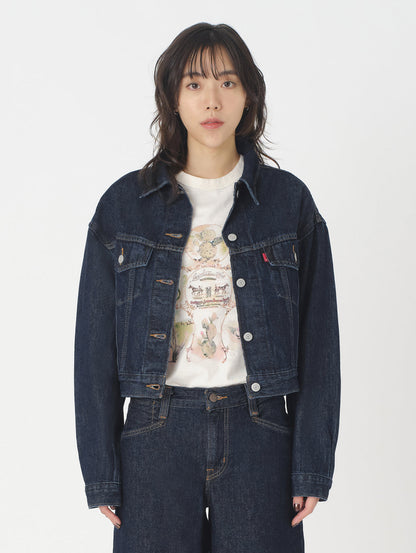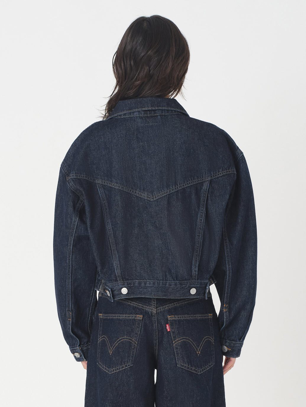 アイコニックな'90s のオーバーサイズのトラッカージャケットをクロップド丈でアップデートしデザインされました。これ以上にシンプルなシェイプで、着やすいウェイト、さらにクールさを備えたジャケットは見つからないでしょう。さらに、ボディラインに沿ったレトロなカットのシルエットが90年代風の雰囲気を演出します。お気に入りのボトムスとセットアップがお勧めです。カラー違いで欲しくなる1枚です。