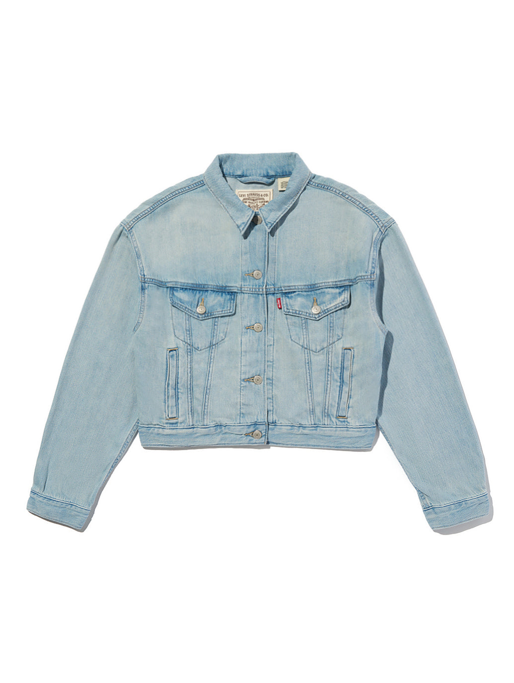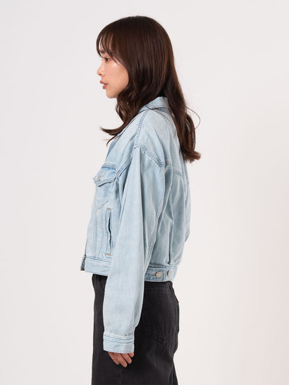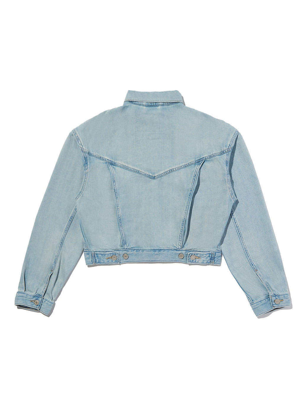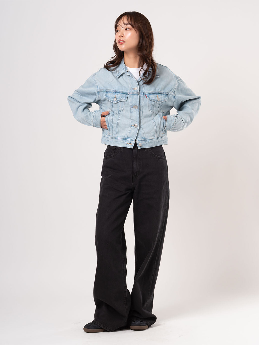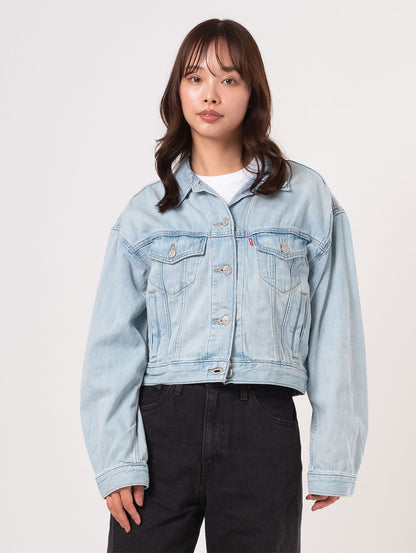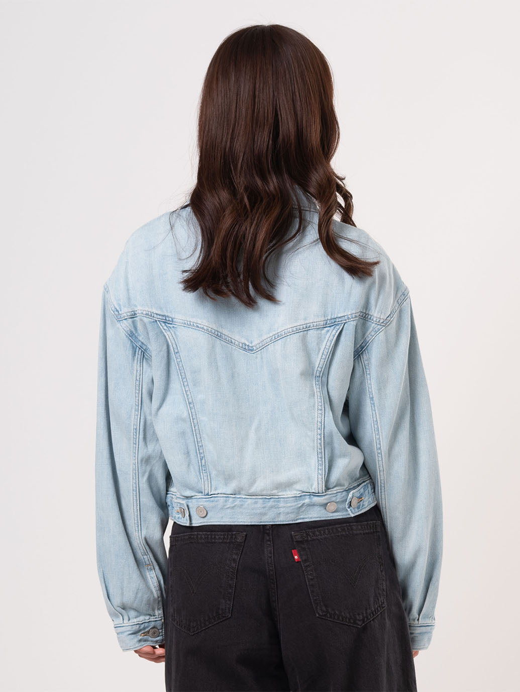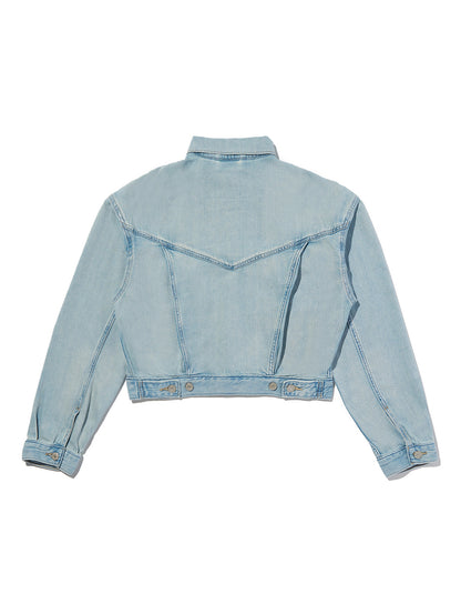 90年代を象徴するトラッカー・ジャケットがクロップド丈にアップデートされました。こちらのスローバック・カットは、90年代特有のピタッとしたシルエットを特徴としています。