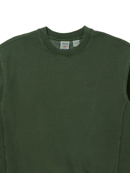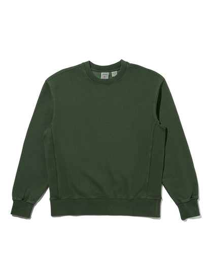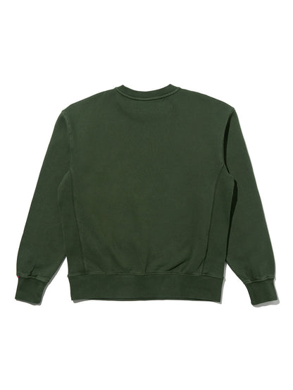 柔らかく起毛したファブリック、ゆったりとしたリラックスフィットを採用したオリーブカラーのボディの胸元に同色の刺繍ロゴをあしらったシンプルかつレトロな雰囲気を感じさせるデザインです。お気に入りのジーンズに是非合わせて頂きたい一着です。