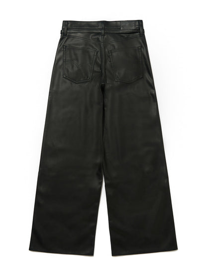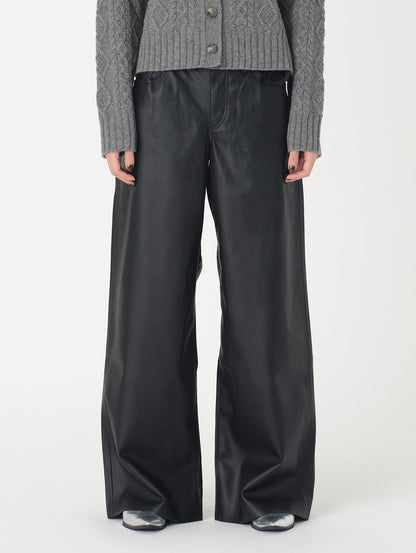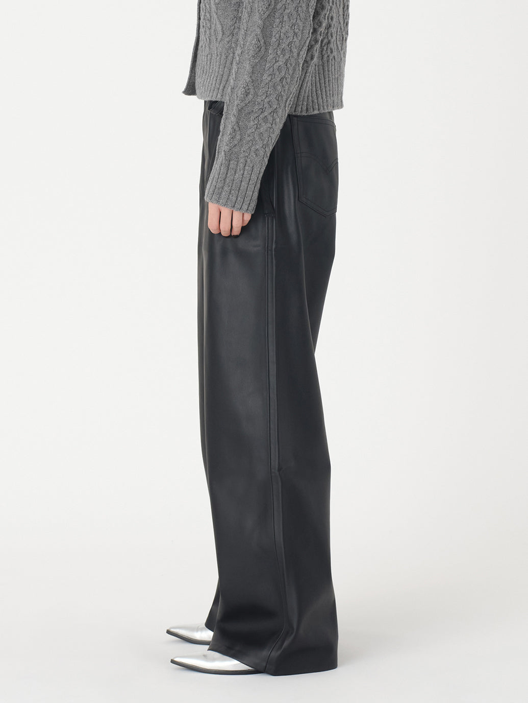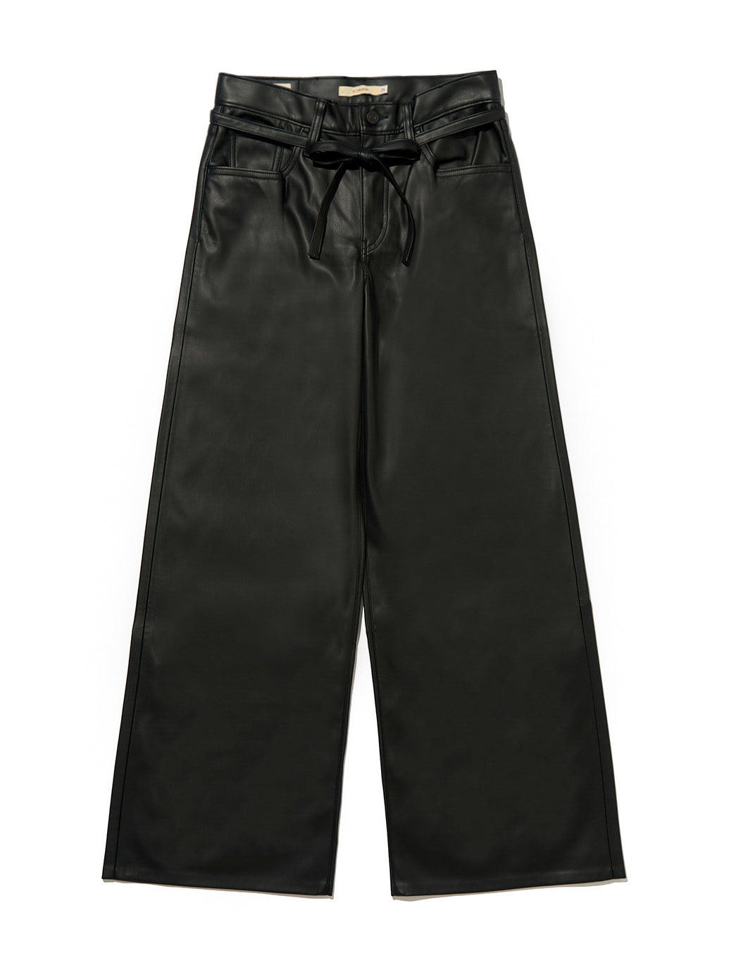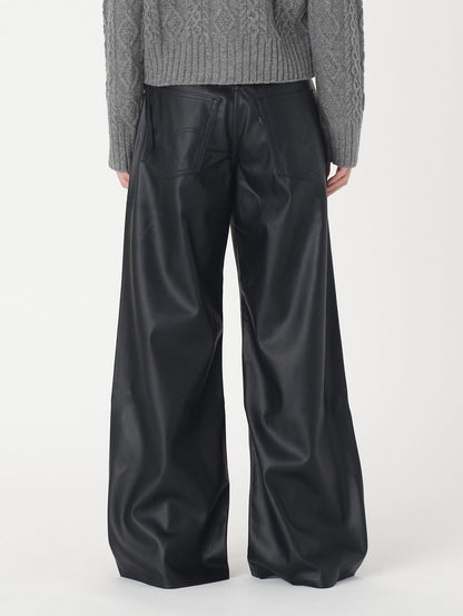 全体的にバギーなスタイルで、ワイドレッグ、なめらかなフェイクレザーを使用した大人気のワイドパンツを仕上げました。