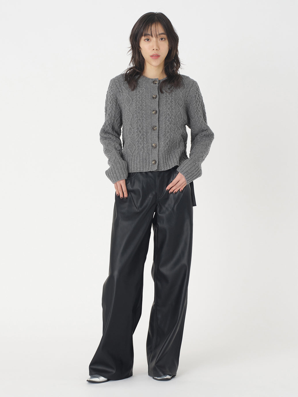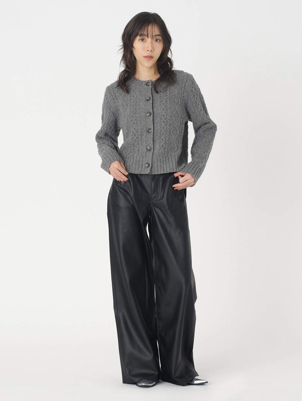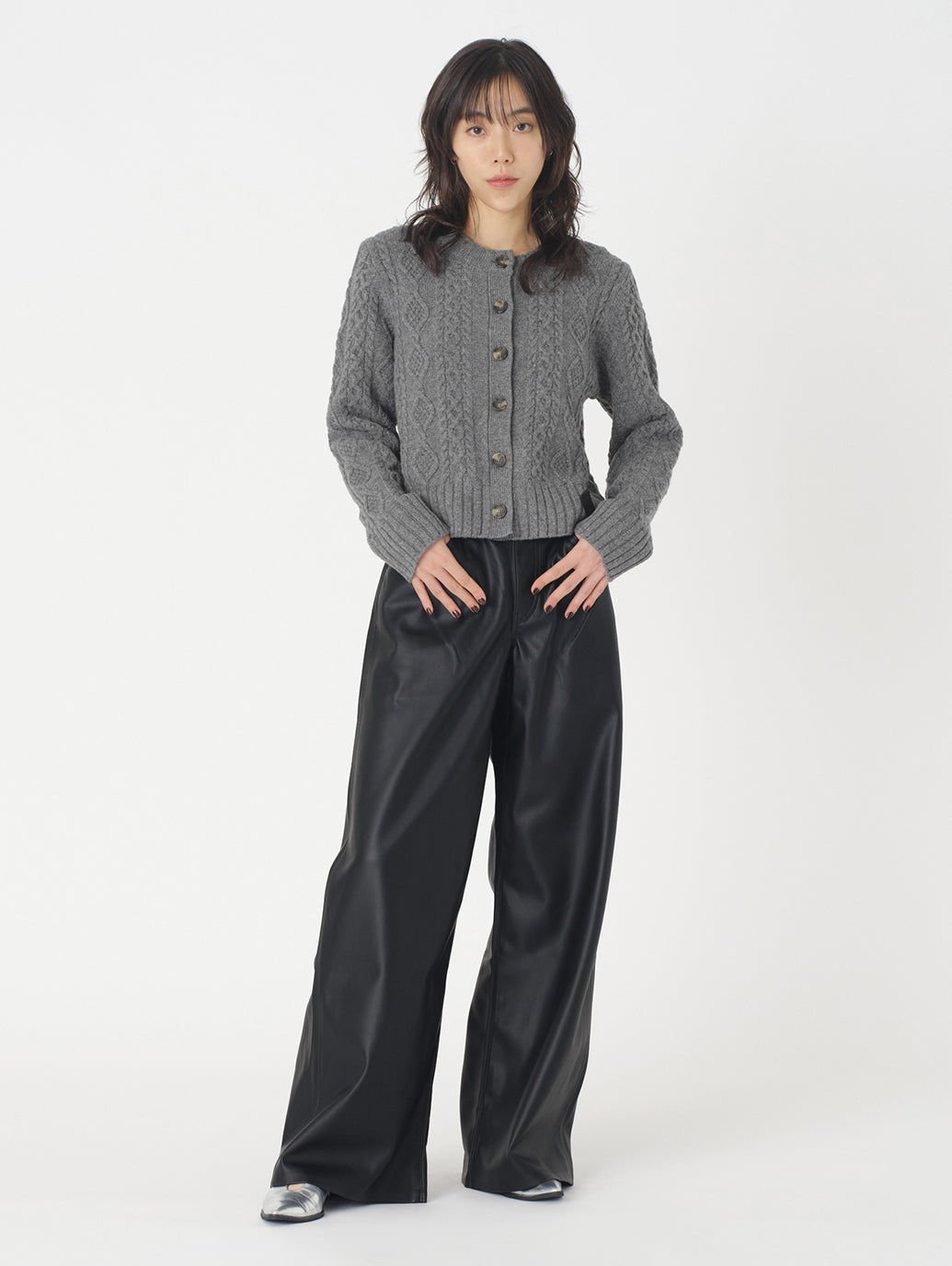 全体的にバギーなスタイルで、ワイドレッグ、なめらかなフェイクレザーを使用した大人気のワイドパンツを仕上げました。