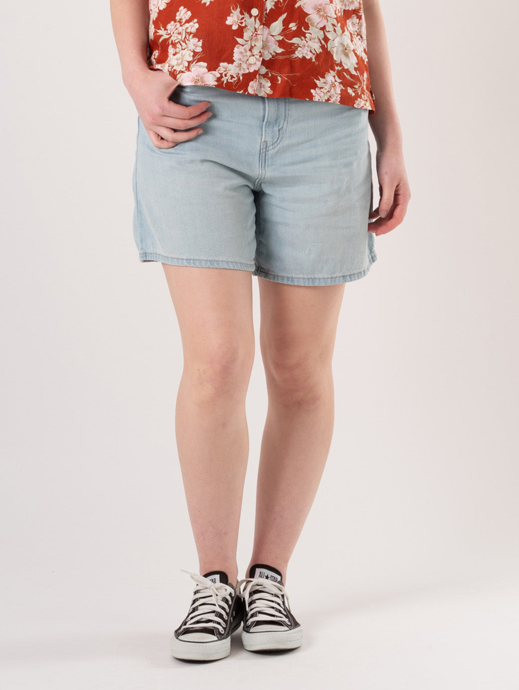 ハイウェスト、動きやすいゆったりとした太もも周りです。ライトブルーカラーで、太もも周りがスッキリ見えるマストハブのショートパンツです。