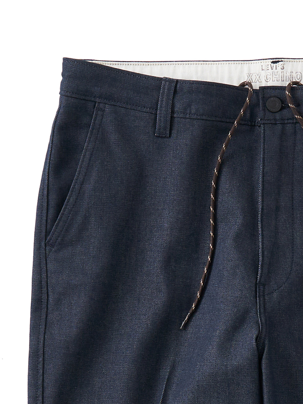 マスターテーラー協力のもと、カスタマイズアイテムを製作。 洗濯してもクリースをくっきりとキープする、防シワ加工を施したSta-Prestのストレートフィットをベースに ウエストは紐仕様ではきやすく、裾にドローコードも付いているためイージーな使い勝手を実現。 レングス32inchの裾を8.5cm裾上げすることによって、程よいクッションをもたせました。 いつものサイズで穿くのも良し、あえて大きいサイズを選んで、オーバーサイズで穿くのもおすすめです。 ちょっとした外出に穿く休日のストリートウェアの雰囲気を感じて欲しいというマスターテーラーの想いがつまったアイテムです。※「(R)」のみが表記されたレッドタブは、LEVI'S(R)の文字が含まれるレッドタブと同様に製品不具合ではありません。