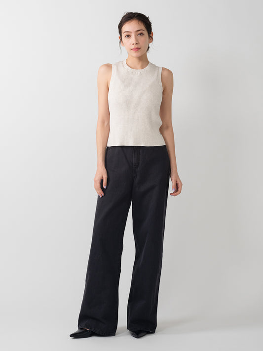 BLUETAB™ ワイドプリーツ CROP ジーンズ ブラック